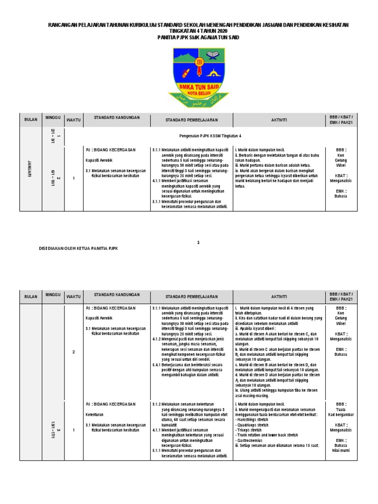 Rpt Pendidikan Jasmani Kesihatan Ting 4 Kssm 2020 Pdf